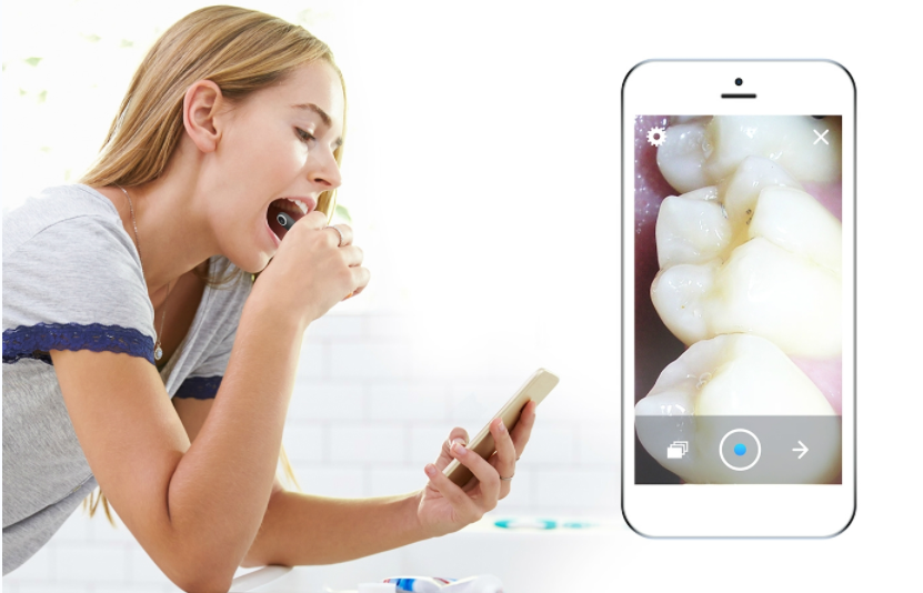 這款特制的“牙齒攝像機(jī)”配合應(yīng)用程序,可以幫助用戶在家中檢查牙齒——拍攝牙齒狀況,上傳給牙科醫(yī)生。也可以通過程序預(yù)約就診或得到治療的建議,有效簡化了牙科診療的程序,使用戶不必頻繁地去醫(yī)院。
